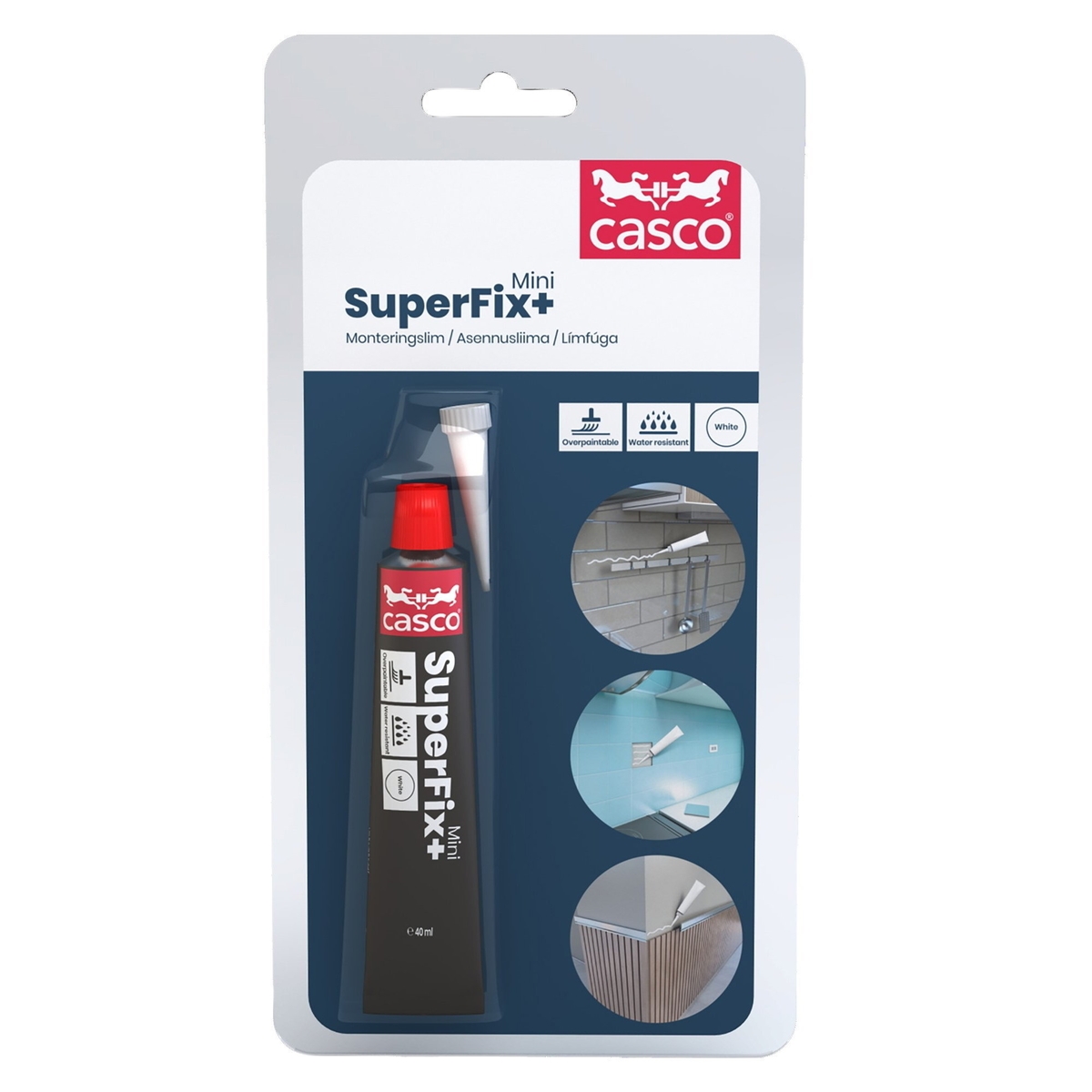 Casco Super Fix ger utmärkt vidhäftning till de flesta material, inklusive metall, trä, glas, plast och porösa underlag.