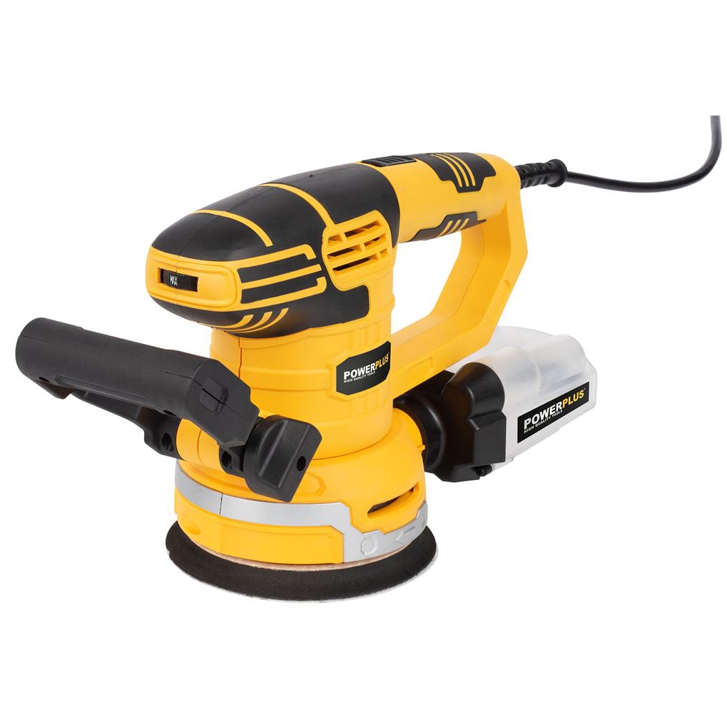 Den excenterslipmaskin från Powerplus är utformad för arbeten där en jämn och kontrollerad bearbetning av både plana och lätt böjda ytor är viktig. Maskinen arbetar med en effekt på 450 watt och har en rund slipplatta som följer materialet på ett stilla och stabilt sätt. Det justerbara stödhantaget ger ett bra grepp oavsett om man arbetar med höger eller vänster hand, och gör det enklare att hålla ett lugnt tempo under slipningen.