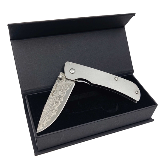 Fällkniven levereras i en snygg presentask där kniven är säker och säker.