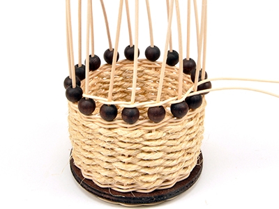 Sätt eventuellt ett glas som passar i storlek ovanpå botten för att göra det enklare att fläta korgen lodrätt uppåt.