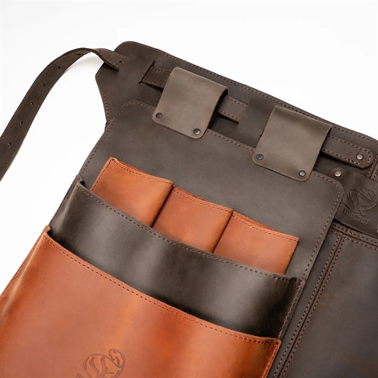 Upplev den perfekta kombinationen av stil och funktion med Leather Work Apron och Tool Belt Pouch Set – ett set i högkvalitativt “crazy horse”-läder.