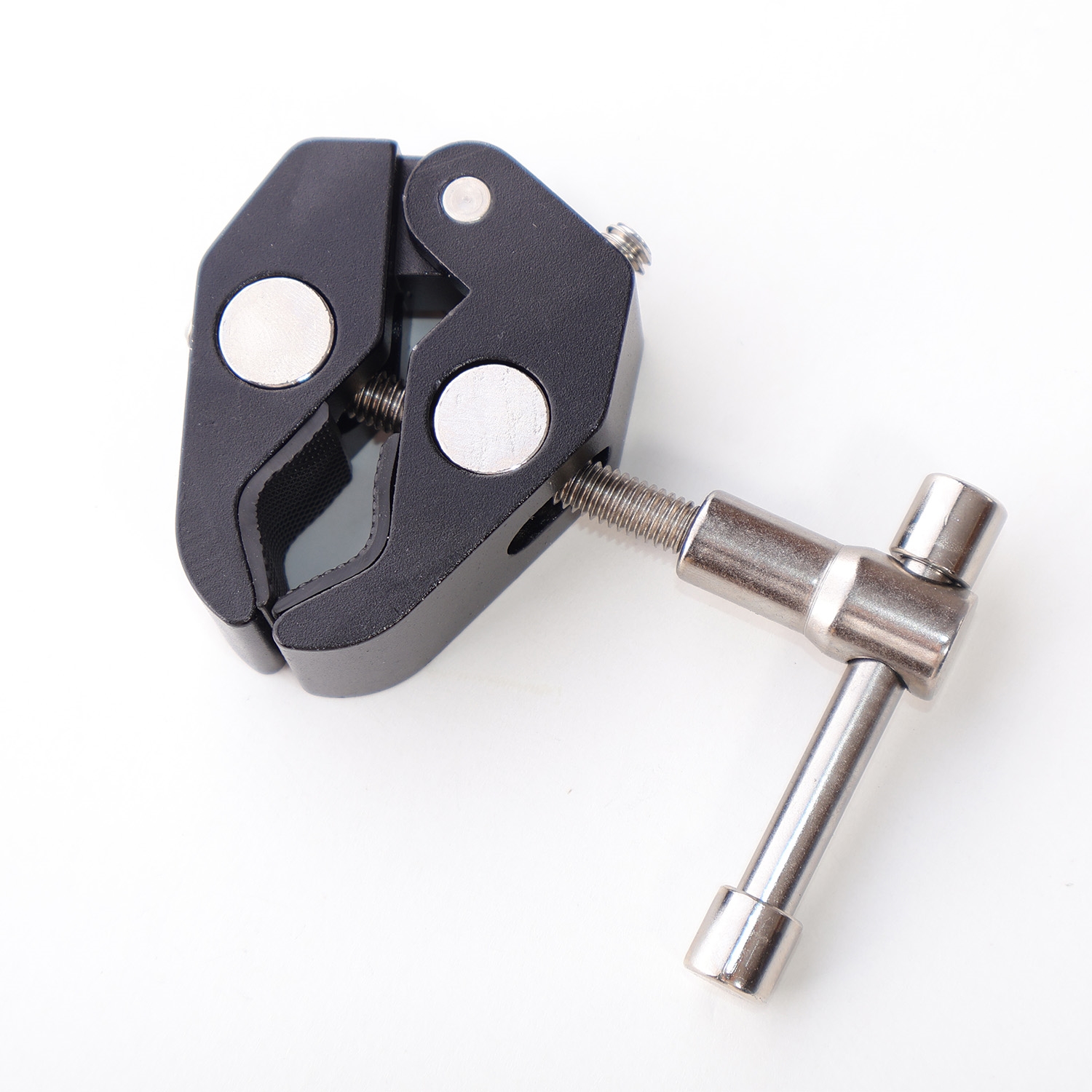 Dino Jaw Clamp er designet til at fastgøre sig effektivt på en række forskellige overflader, og dens justerbare kæber giver mulighed for en fast klamring på op til 55 mm i dybden. Dette gør klemmen perfekt til at sikre forlængere eller goosenecks på både uregelmæssige genstande og flade overflader med en dybde på op til 55 mm.