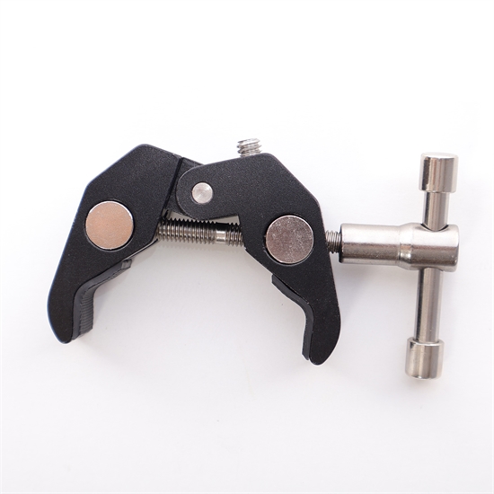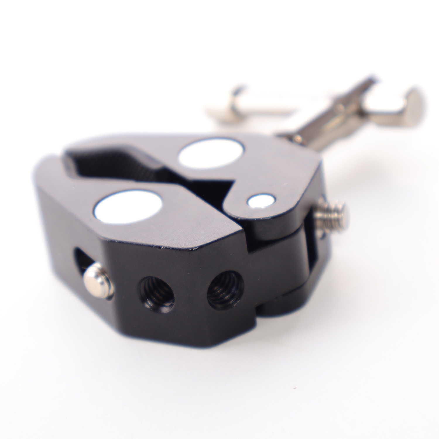 Klemmen er udstyret med både han- og hun-1/4 tomme gevind, hvilket muliggør fastgørelse til den anden ende af et gooseneck. I stedet for at støtte et lys eller forstørrelsesglas, kan den fungere som en "tredje hånd", der holder forskellige genstande på plads og giver dig fri hænder.