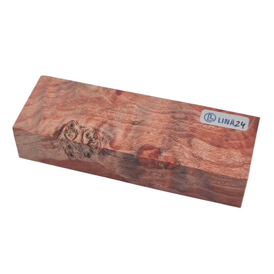 Detta träämne är tillverkat av noggrant utvald popplervårta, som kännetecknas av sin dekorativa och livliga ådring med naturliga vårtor och färgskiftningar. De oregelbundna formationerna i träet ger varje bit ett unikt uttryck, vilket gör materialet särskilt lämpligt för projekt där det visuella intrycket har stor betydelse – exempelvis knivskaft, smycken eller exklusiva handtag.