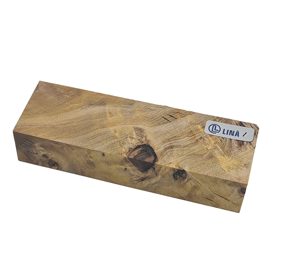 Detta träämne är tillverkat av noggrant utvald popplervårta, som kännetecknas av sin dekorativa och livliga ådring med naturliga vårtor och färgskiftningar. De oregelbundna formationerna i träet ger varje bit ett unikt uttryck, vilket gör materialet särskilt lämpligt för projekt där det visuella intrycket har stor betydelse – exempelvis knivskaft, smycken eller exklusiva handtag.