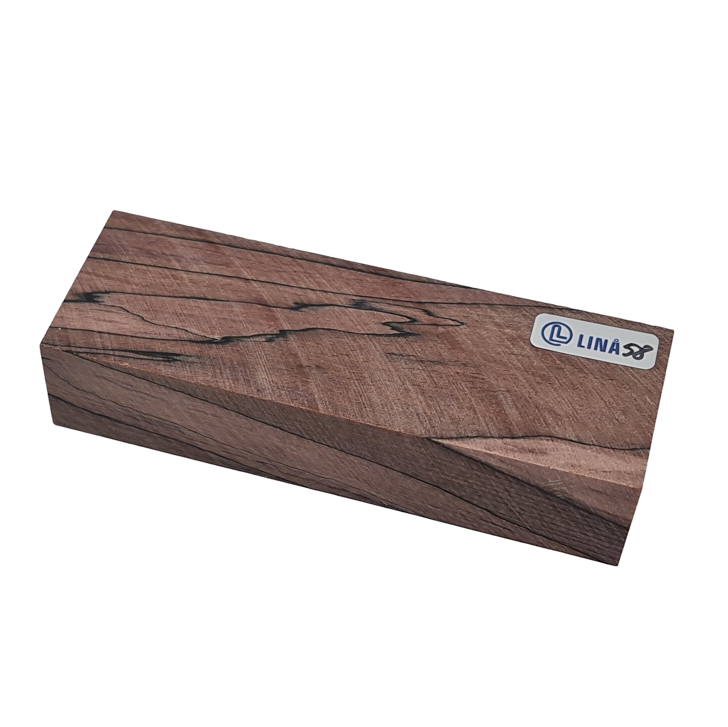 Stabiliserat träämne för knivskaft – Ångad bok med tydliga mörka markeringar efter rötskador (stabiliserat av Raffir)