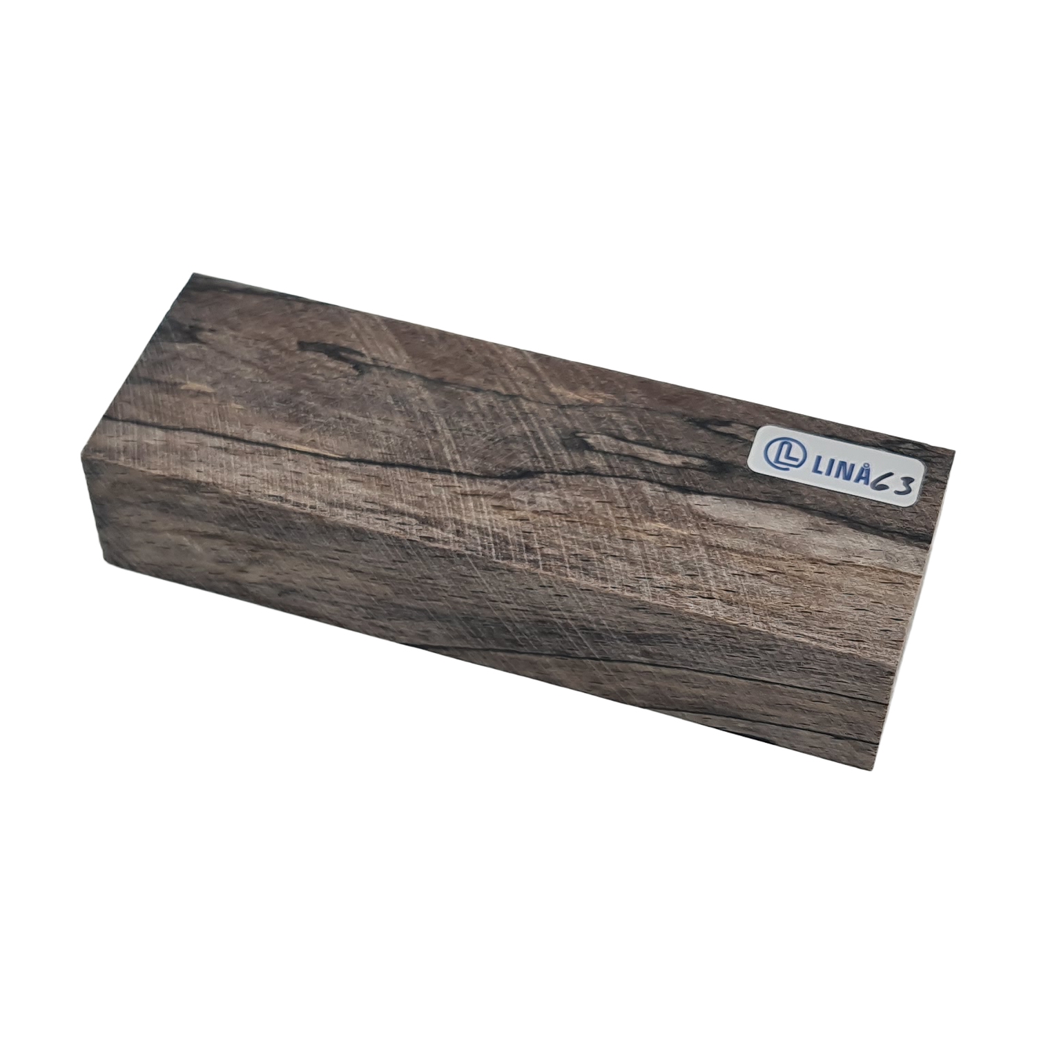 Stabiliserat träämne för knivskaft – Ångad bok med tydliga mörka markeringar efter rötskador (stabiliserat av Raffir)