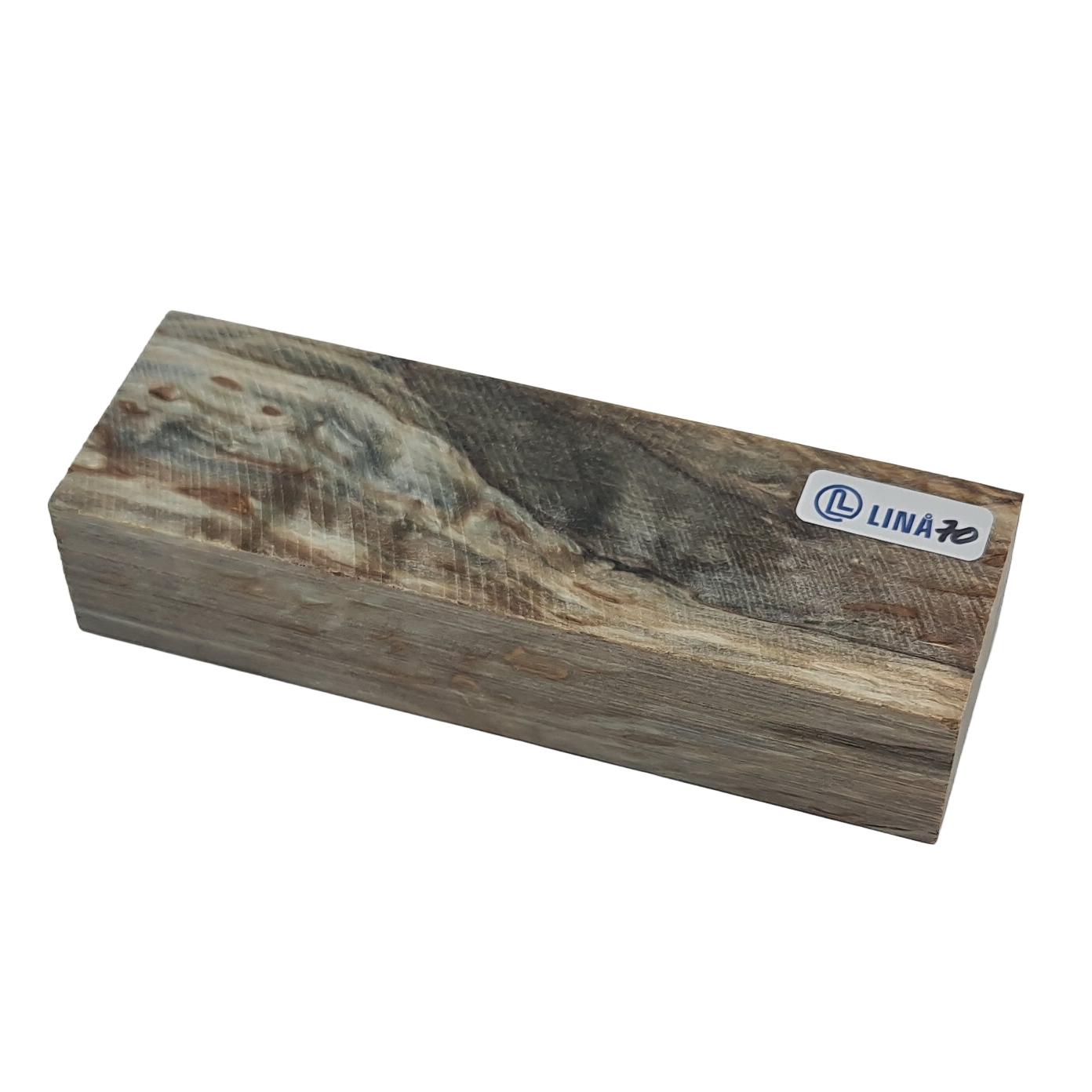 Stabiliserat träämne för knivskaft – Ångad bok med tydliga mörka markeringar efter rötskador (stabiliserat av Raffir)