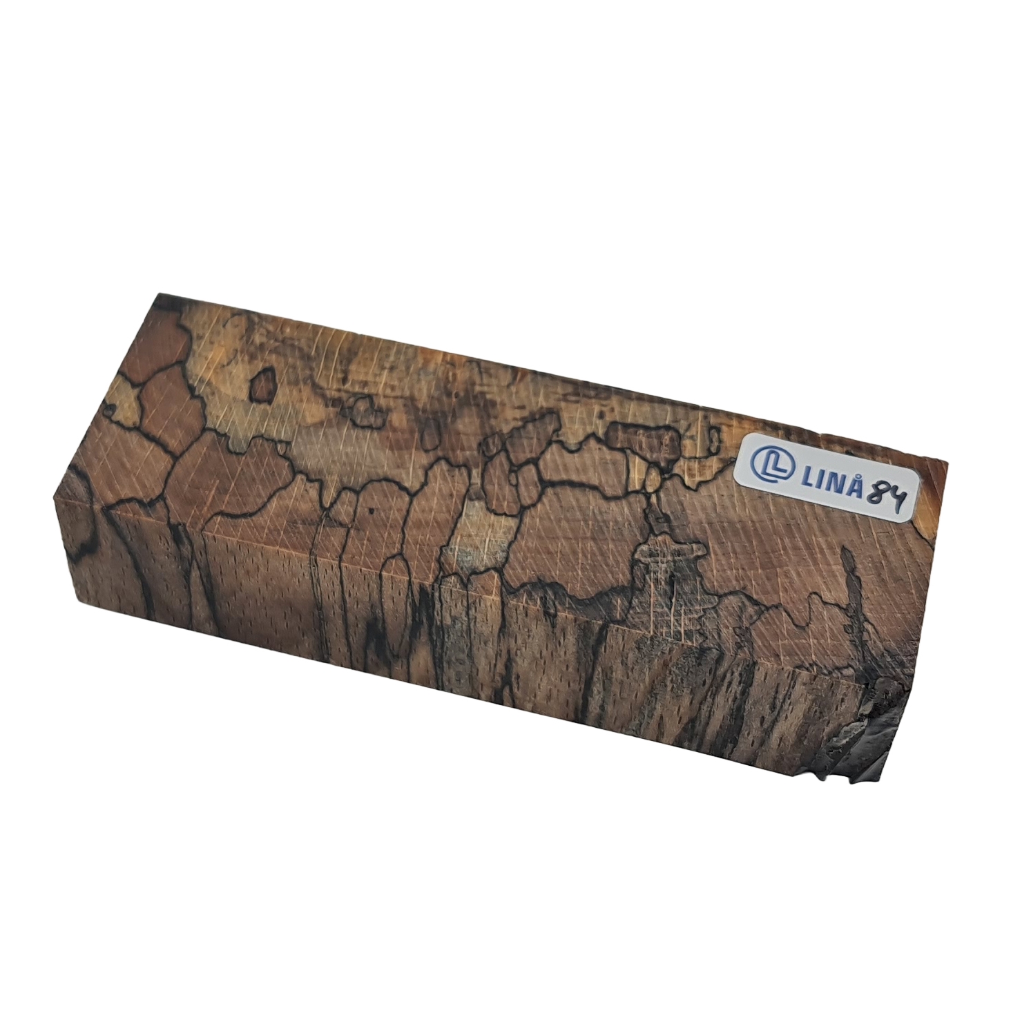 Stabiliserat träämne för knivskaft – Ångad bok med tydliga mörka markeringar efter rötskador (stabiliserat av Raffir)