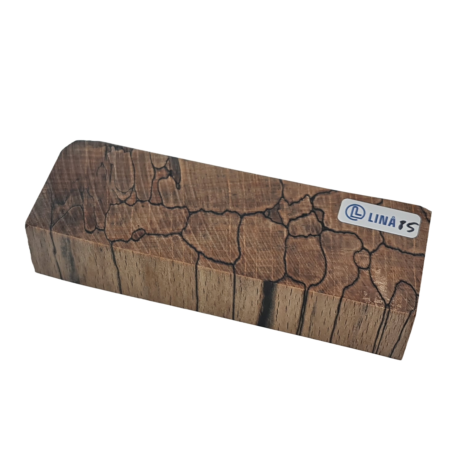 Stabiliserat träämne för knivskaft – Ångad bok med tydliga mörka markeringar efter rötskador (stabiliserat av Raffir)