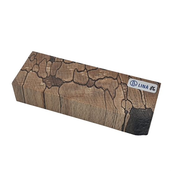 Stabiliserat träämne för knivskaft – Ångad bok med tydliga mörka markeringar efter rötskador (stabiliserat av Raffir)