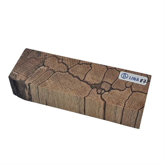 Stabiliserat träämne för knivskaft – Ångad bok med tydliga mörka markeringar efter rötskador (stabiliserat av Raffir)