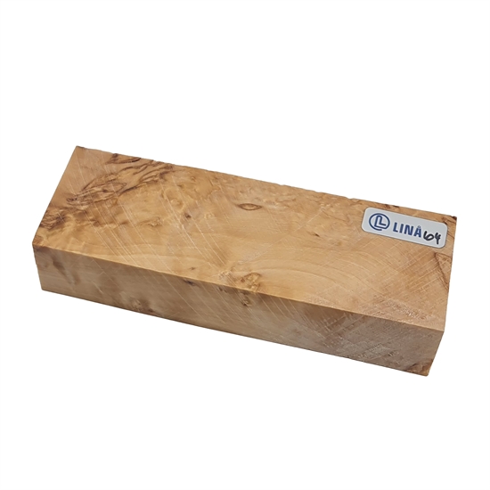 Detta träemne är framställt av noggrant utvald masurbjörk, som är känd för sin livliga och karaktärsfulla ådring med små knutor, vågor och ett tydligt spel i ytan. Den naturliga strukturen ger ett dynamiskt och dekorativt uttryck där varje emne är helt unikt. Det gör materialet särskilt lämpligt för projekt där både estetik och hantverk står i fokus – exempelvis knivskaft, smycken eller mindre grepp.