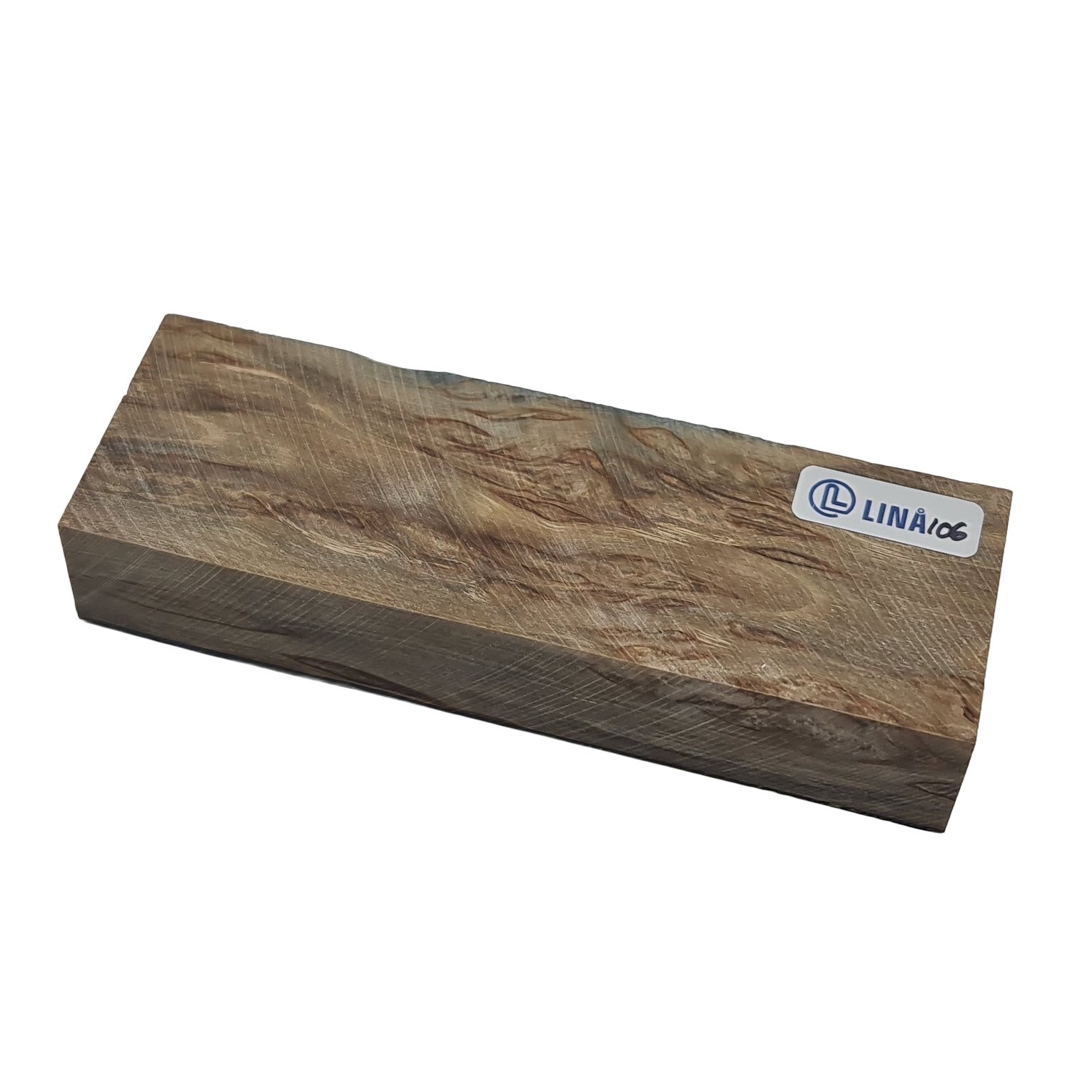 Detta träemne är framställt av noggrant utvald masurbjörk, som är känd för sin livliga och karaktärsfulla ådring med små knutor, vågor och ett tydligt spel i ytan. Den naturliga strukturen ger ett dynamiskt och dekorativt uttryck där varje emne är helt unikt. Det gör materialet särskilt lämpligt för projekt där både estetik och hantverk står i fokus – exempelvis knivskaft, smycken eller mindre grepp.