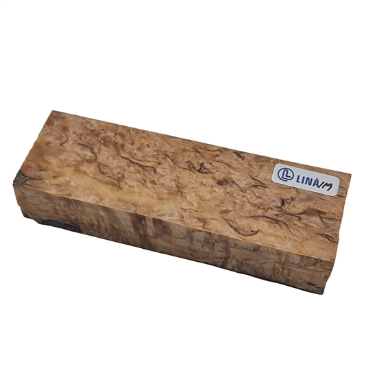 Detta träemne är framställt av noggrant utvald masurbjörk, som är känd för sin livliga och karaktärsfulla ådring med små knutor, vågor och ett tydligt spel i ytan. Den naturliga strukturen ger ett dynamiskt och dekorativt uttryck där varje emne är helt unikt. Det gör materialet särskilt lämpligt för projekt där både estetik och hantverk står i fokus – exempelvis knivskaft, smycken eller mindre grepp.