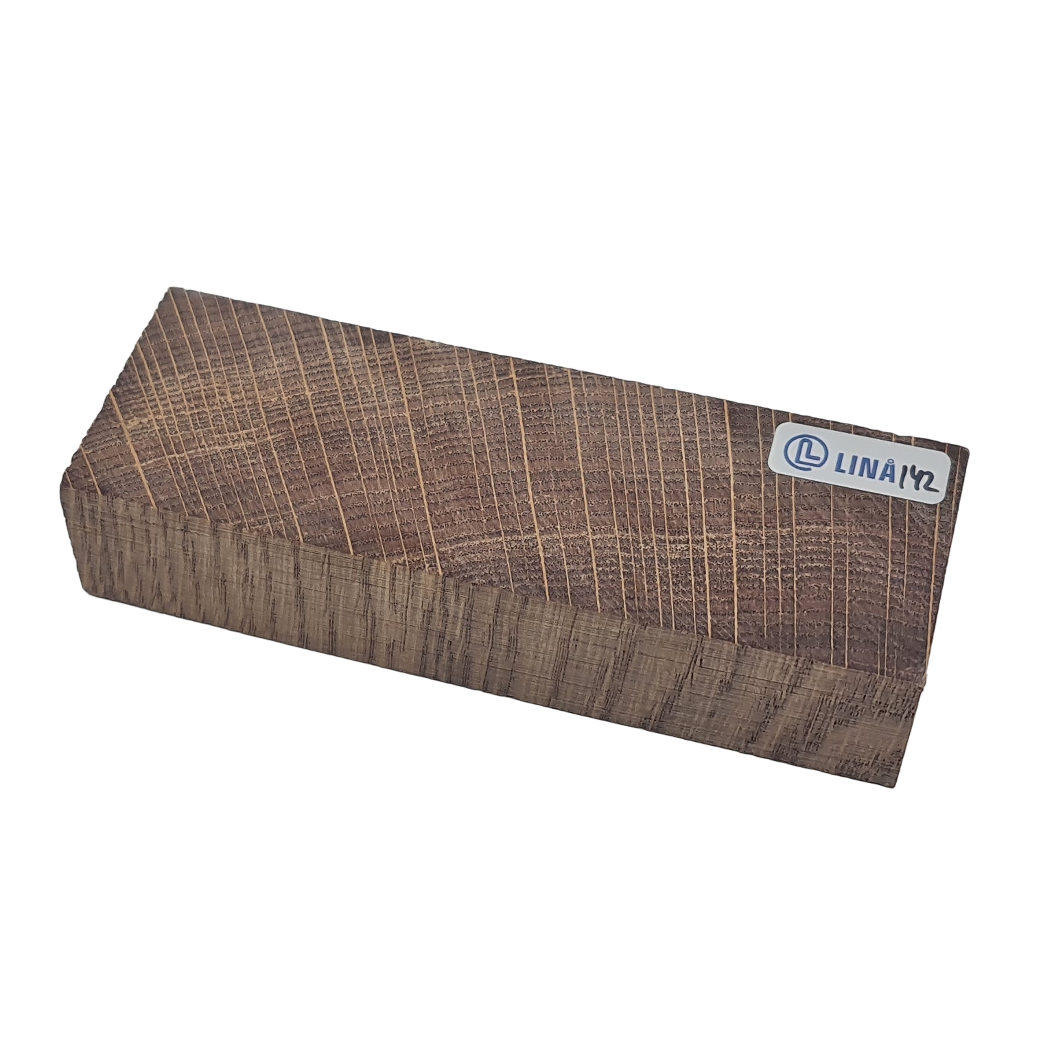 Detta träämne är framställt av noggrant utvald ek, som är känd för sin tydliga ådring med markerade årsringar och ett lugnt, klassiskt uttryck i ytan. Den naturliga strukturen ger ett gediget och tidlöst utseende, vilket gör varje ämne visuellt unikt och särskilt lämpligt för projekt där både hållbarhet och estetik är i fokus – exempelvis knivskaft, smycken eller mindre handtag.