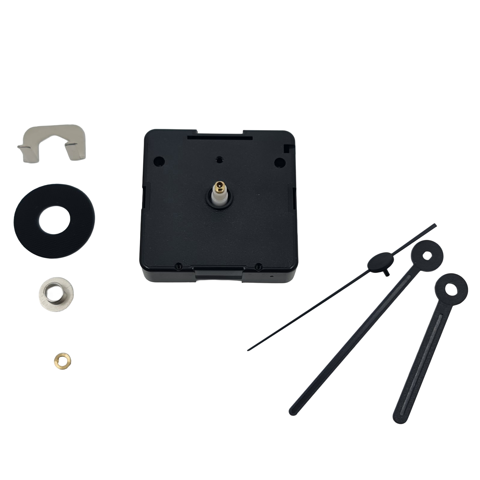 Medföljer gör tim-, minut- och sekundvisare i enkel, svart design som passar många typer av urtavlor. De är lätta och balanserade så att belastningen på verket hålls minimal. Dessutom medföljer urtavleunderlag, skiverondell, mutter och upphängningsbeslag, så monteringen kan anpassas till olika taveltjocklekar och upphängningslösningar. Urverket passar urtavlor med en tjocklek på 2–5 mm, vilket gör det användbart både för tunnare plattor och mer solida material.