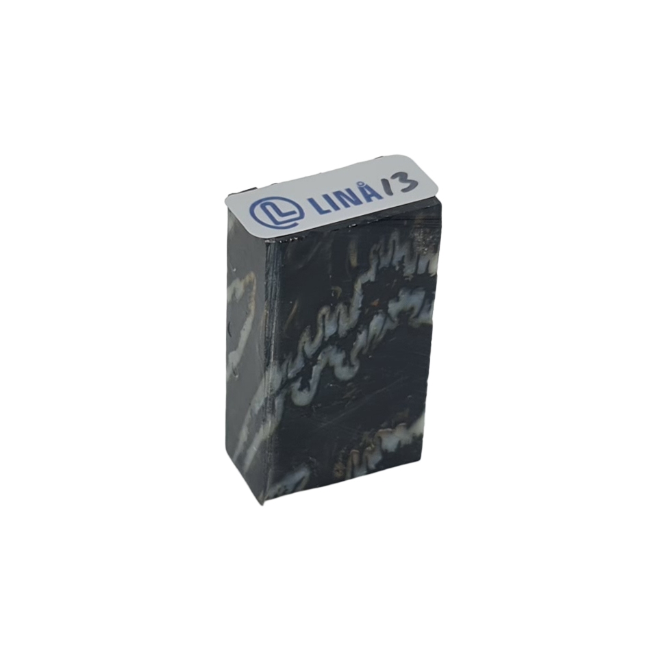 Mammut kindtand, även kallad mammut molar, stabiliserad av Raffir är ett särskilt material med både historia och karaktär. Tanden härstammar från den senaste istiden, uppskattningsvis 10 000 till 40 000 år tillbaka, och bär tydliga spår av sitt ursprung i struktur och färgspel. Genom stabilisering med resin har materialet gjorts användbart för modernt hantverk, där det annars fossila och porösa utgångsmaterialet får tillräcklig styrka och hållbarhet för praktisk användning.