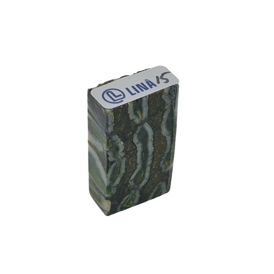 Mammut kindtand, även kallad mammut molar, stabiliserad av Raffir är ett särskilt material med både historia och karaktär. Tanden härstammar från den senaste istiden, uppskattningsvis 10 000 till 40 000 år tillbaka, och bär tydliga spår av sitt ursprung i struktur och färgspel. Genom stabilisering med resin har materialet gjorts användbart för modernt hantverk, där det annars fossila och porösa utgångsmaterialet får tillräcklig styrka och hållbarhet för praktisk användning.