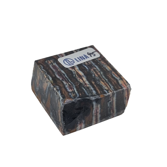 Mammut kindtand, även kallad mammut molar, stabiliserad av Raffir är ett särskilt material med både historia och karaktär. Tanden härstammar från den senaste istiden, uppskattningsvis 10 000 till 40 000 år tillbaka, och bär tydliga spår av sitt ursprung i struktur och färgspel. Genom stabilisering med resin har materialet gjorts användbart för modernt hantverk, där det annars fossila och porösa utgångsmaterialet får tillräcklig styrka och hållbarhet för praktisk användning.