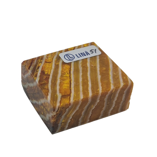 Mammut kindtand, även kallad mammut molar, stabiliserad av Raffir är ett särskilt material med både historia och karaktär. Tanden härstammar från den senaste istiden, uppskattningsvis 10 000 till 40 000 år tillbaka, och bär tydliga spår av sitt ursprung i struktur och färgspel. Genom stabilisering med resin har materialet gjorts användbart för modernt hantverk, där det annars fossila och porösa utgångsmaterialet får tillräcklig styrka och hållbarhet för praktisk användning.