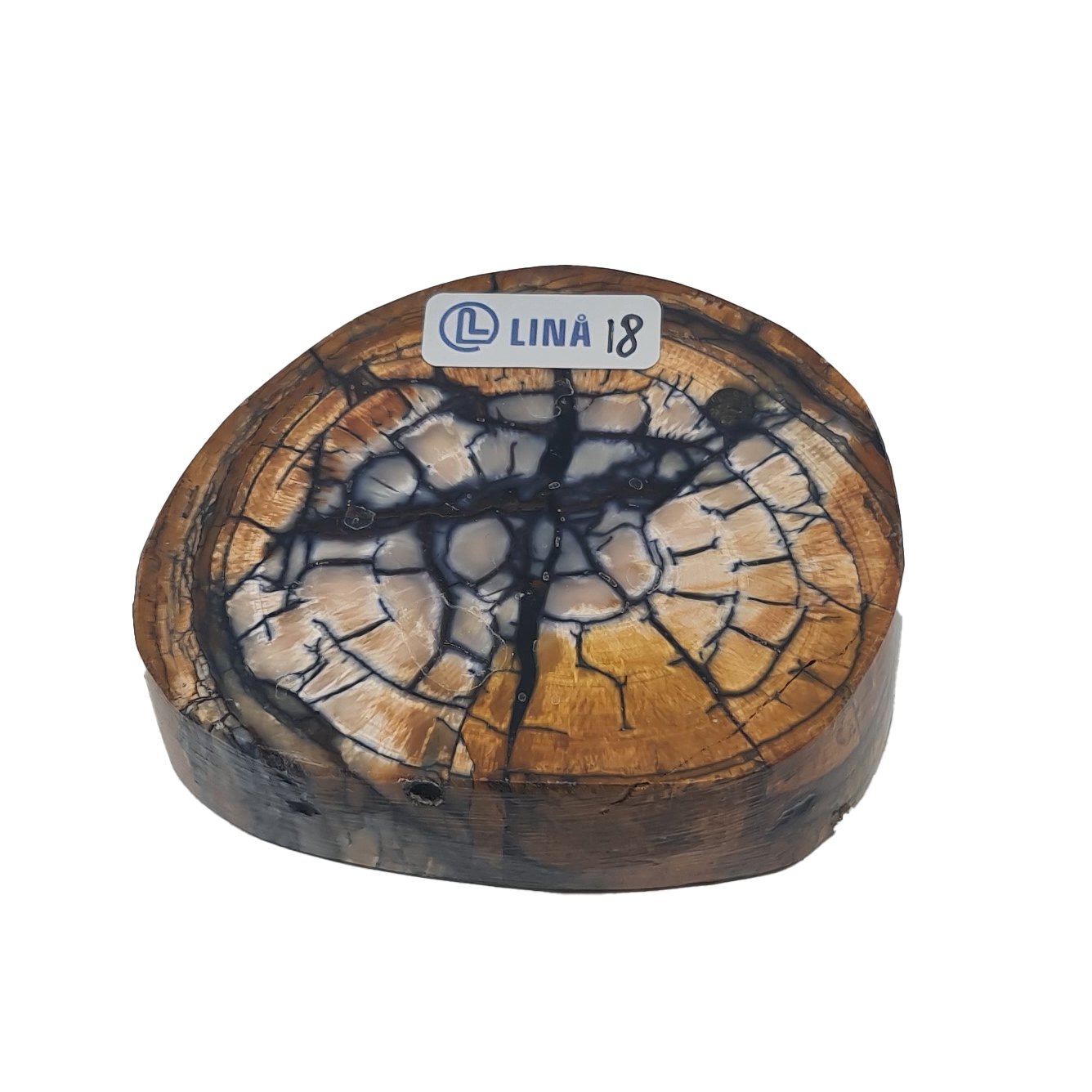 Materialet är stabiliserat av Raffir. Under vakuum fylls beten med akryl, vilket förstärker strukturen och fyller naturliga håligheter och sprickor – utan att förändra det autentiska utseendet.