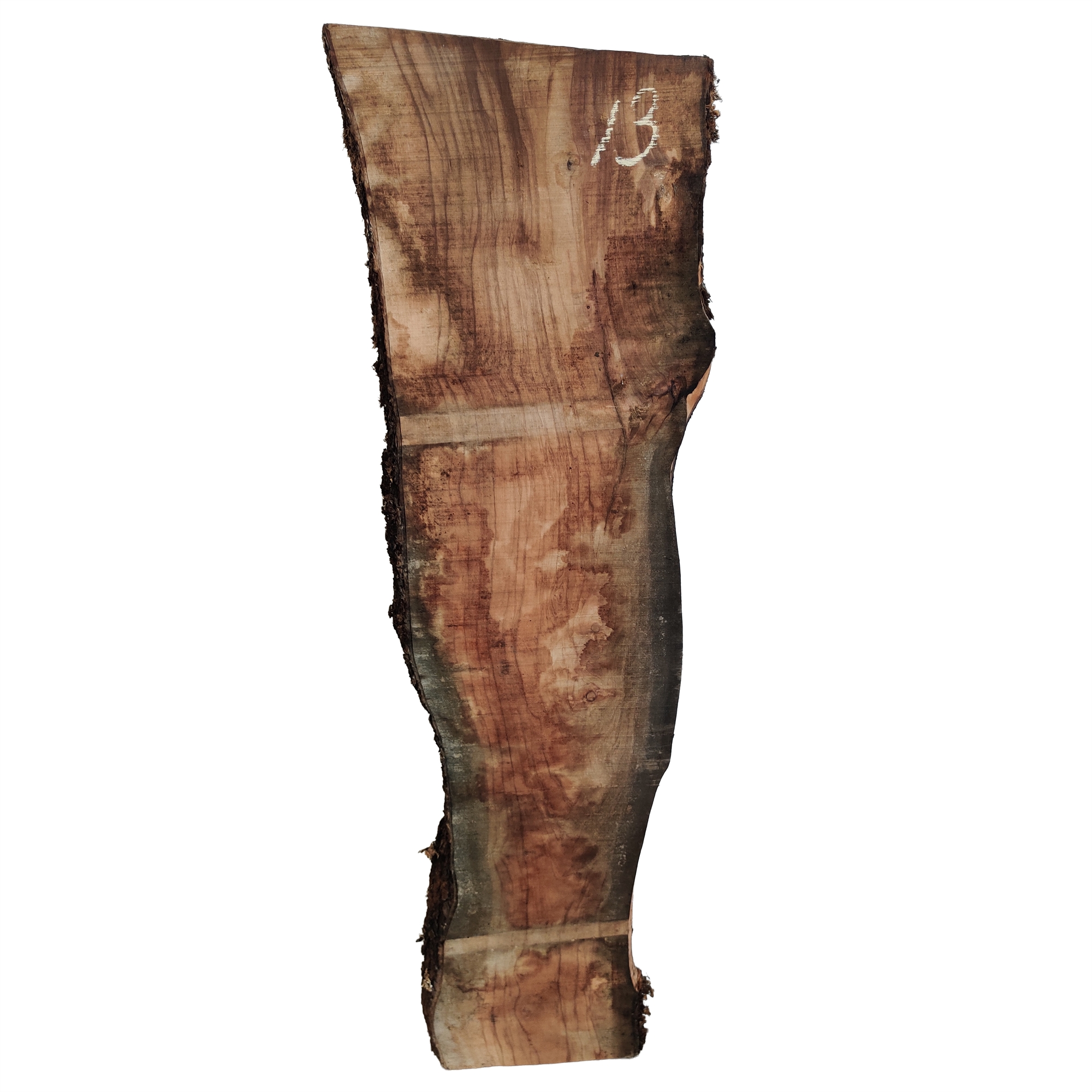 Plankorna levereras med naturlig barkkant, vilket ger ett levande och autentiskt uttryck som många uppskattar i både hantverksmässiga och dekorativa projekt. Olivträ har ett relativt högt fuktinnehåll och torkar långsamt, vilket gör hanteringen mer krävande än för många andra träslag. Det rekommenderas att undvika förvaring i mycket varma eller torra miljöer och i stället arbeta med materialet stegvis, så att träet kan anpassa sig gradvis. Under torkningen uppstår ofta sprickor och vridningar, eftersom olivträ rör sig en hel del i takt med att det avger fukt.