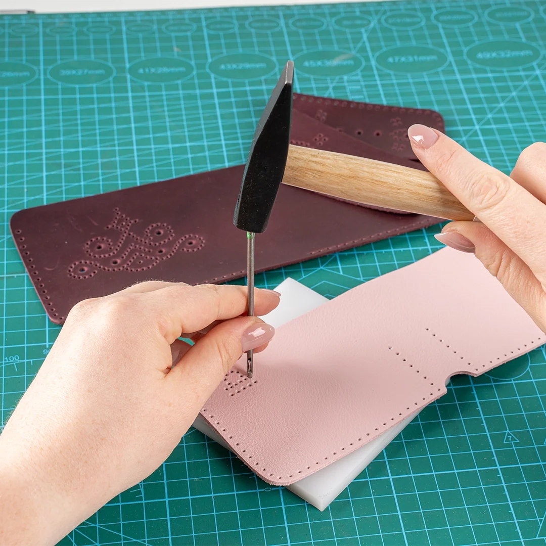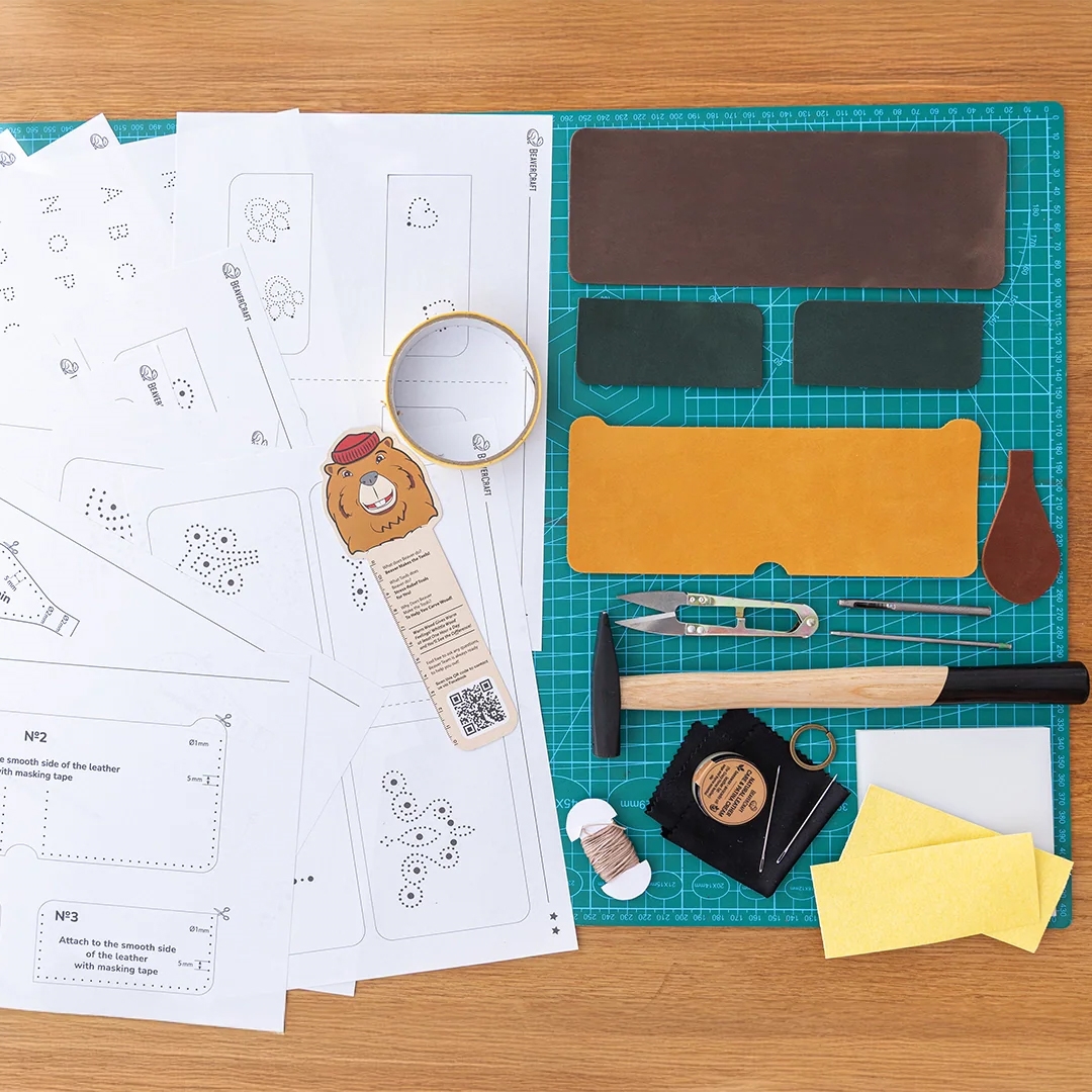 Kitet lär dig grunderna i sömnad och hur man behandlar läder. Med det medföljande verktyget kan du skapa din egen unika plånbok eller välja bland de många dekorationer vi har tagit fram.
