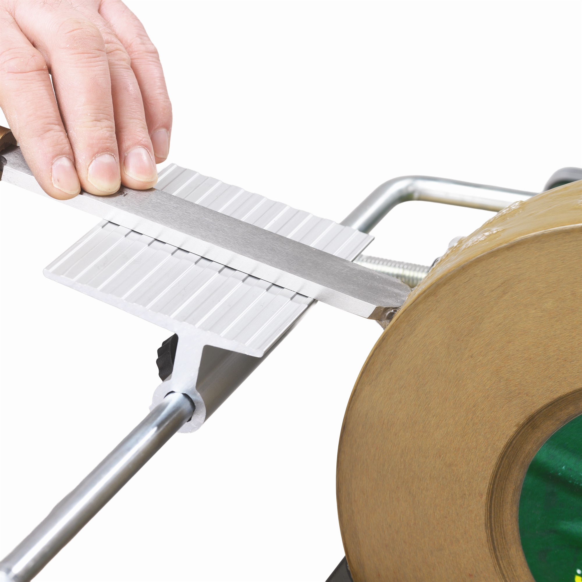 Slipstödet ger en kontrollerad och jämn föring mot slipstenen, vilket gör det enklare att bibehålla en stabil slipvinkel och ett jämnt tryck under arbetet. Detta bidrar till en mer exakt egg och ett enhetligt resultat över hela verktygets längd.