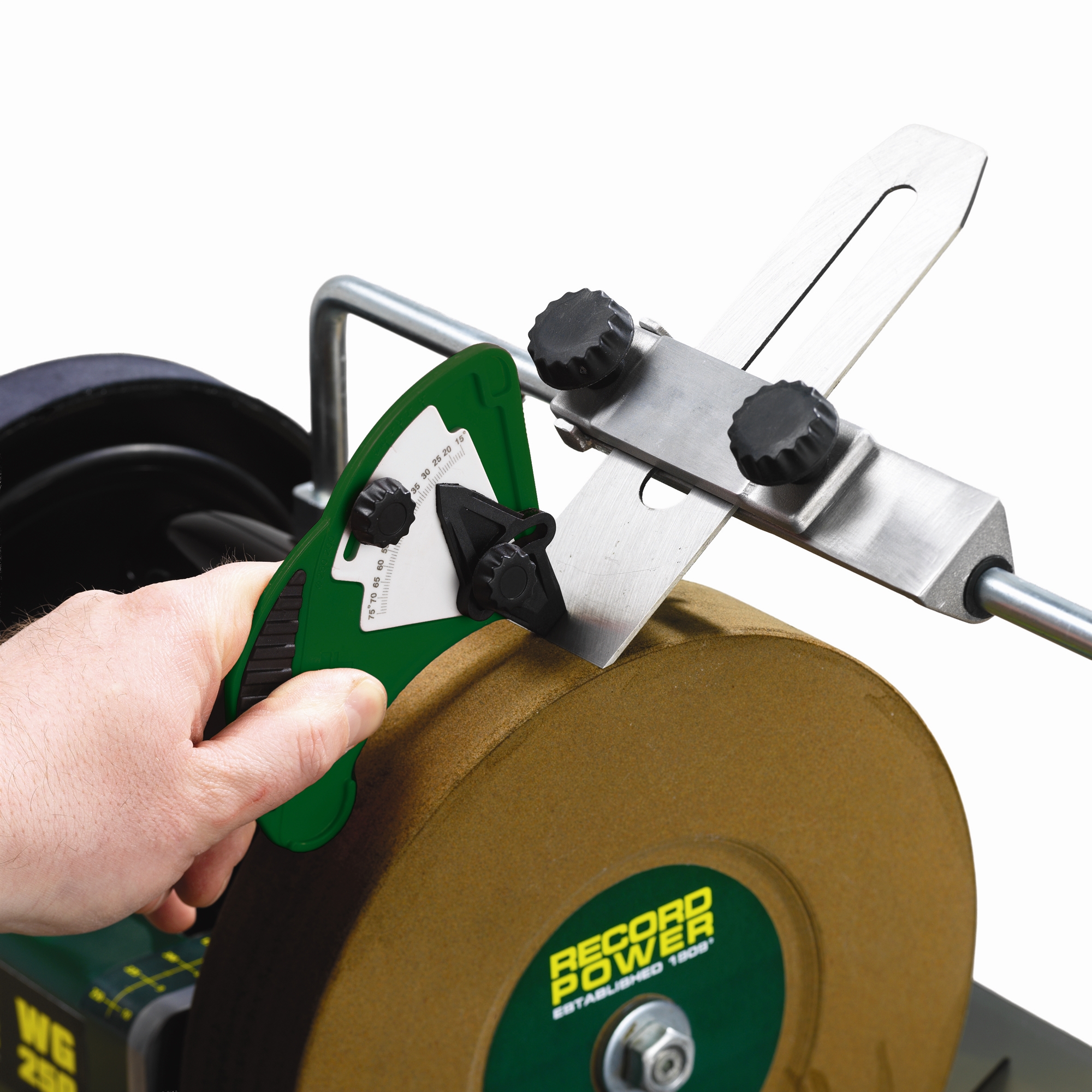 Sammanfattningsvis är Record Power WG250-T en enkel men viktig lösning för exakt vinkelkontroll, där korrekt arbetsvinkel mot slipstenen är i fokus för att uppnå skarpa och enhetliga resultat.