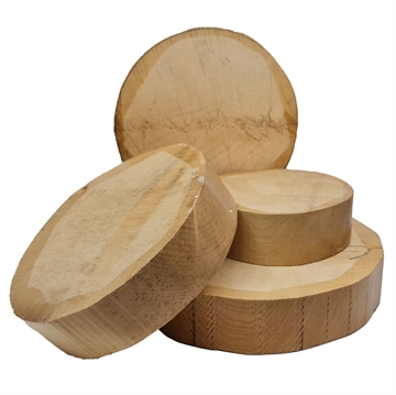 En rondell är en träkloss som sågats rund, vilket är en praktisk lösning som gör det lättare för både nybörjare och erfarna träsvarvare att snabbt komma igång. I stället för att arbeta med en fyrkantig och ofta ojämn kloss får du en rund form som är klar att monteras på svarven. Det sparar tid och kraft och minskar behovet av grovbearbetning i början. Träet är utvalt för träsvarvning, vilket innebär att det har rätt egenskaper, såsom en lämplig hårdhet och en jämn struktur. Men trä är ett naturmaterial, så små kvistar, ådringsvariationer eller ytliga sprickor kan förekomma. Dessa oregelbundenheter är naturliga och kan ofta integreras i designen för att tillföra karaktär och unika detaljer till det färdiga arbetet. Kanterna på rondellerna är behandlade med vax för att förhindra uttorkning, vilket annars kan leda till sprickor eller flisor under lagring eller bearbetning.