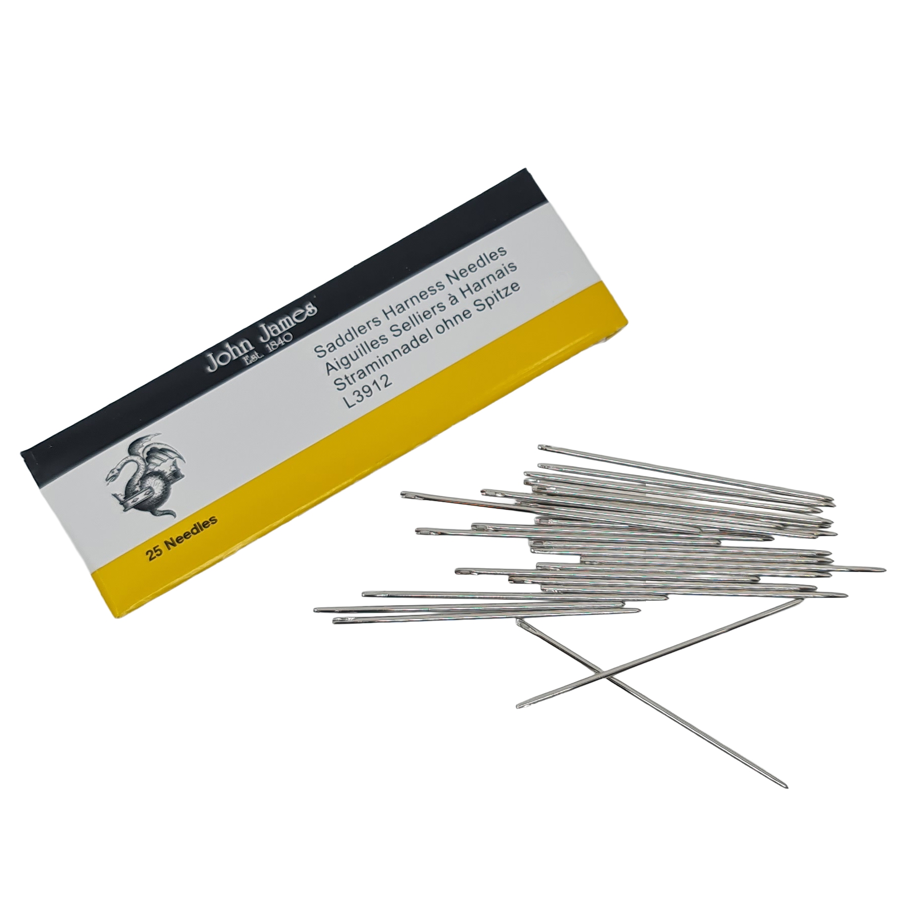 Dessa nålar är avsedda för handsömnad i läder och skinn. Eftersom de saknar spets behöver man först göra hål i materialet – med en syl eller en lädergaffel – innan nålen kan föras igenom. Det ger en mer kontrollerad och skonsam sömnad, särskilt i tjockare eller hårdare läder.