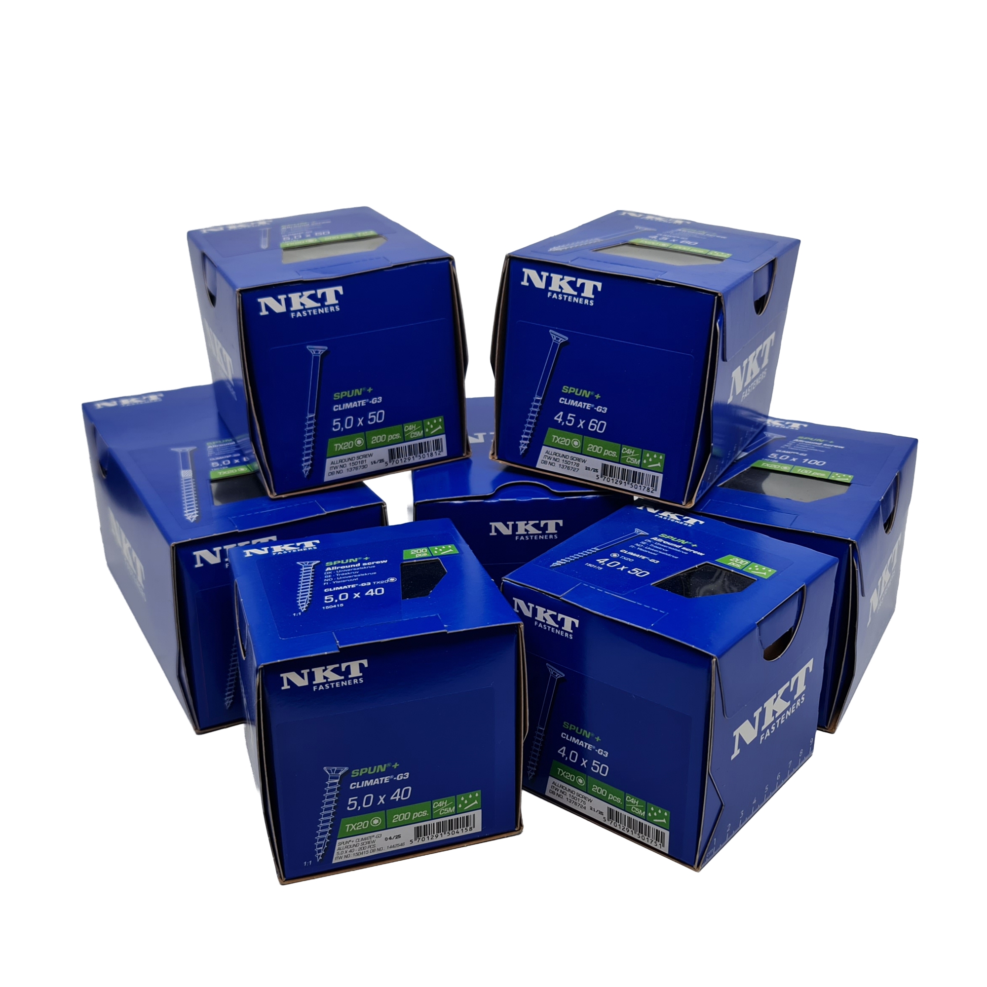Spun+-skruvarna är designade för extra styrka och optimal inskruvning i trä, vilket säkerställer precisa resultat utan risk för att materialet spricker.