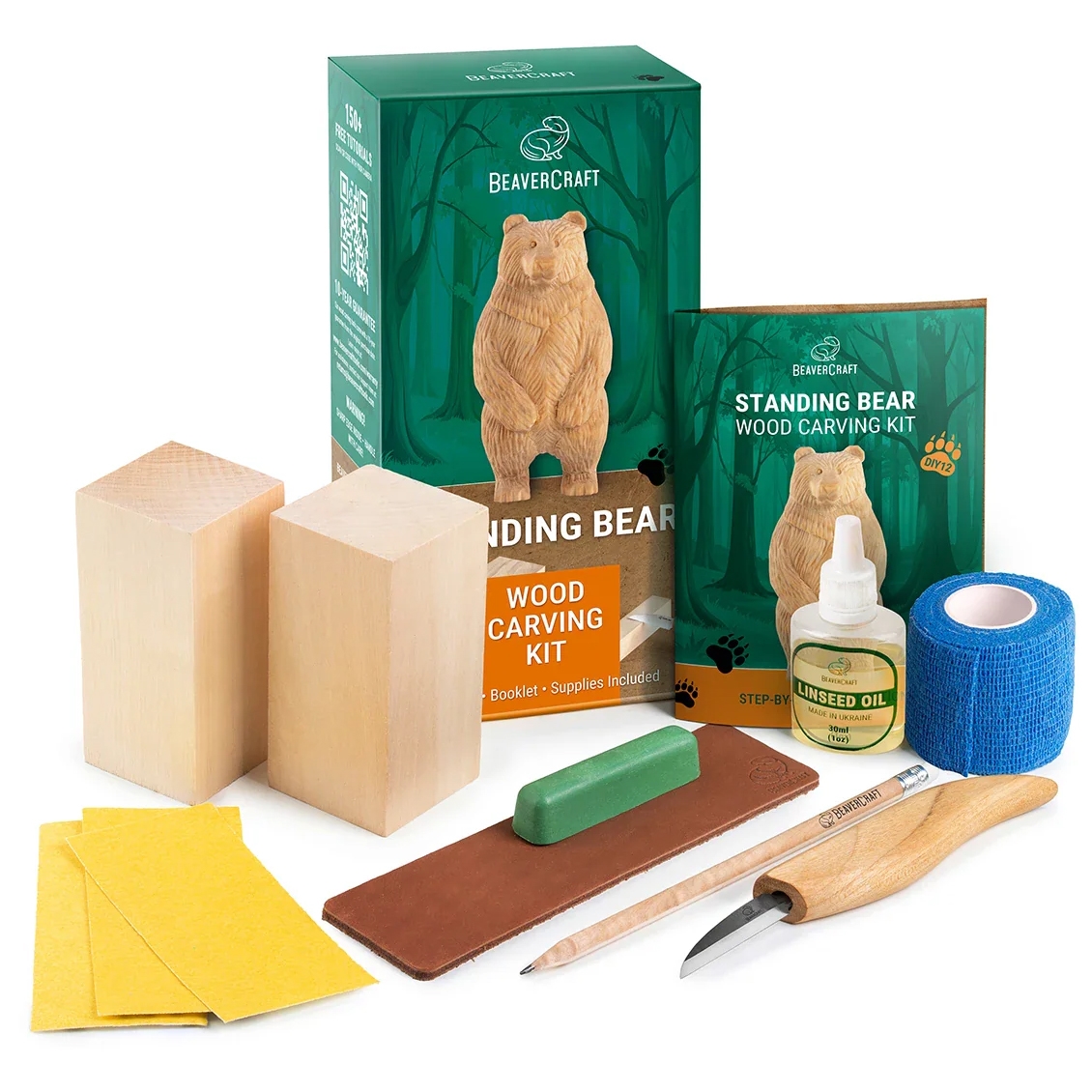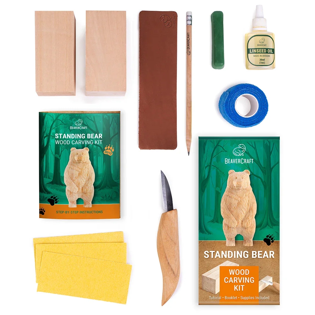 Den färdiga stående björnen kan användas som en liten dekoration, en handgjord present eller till och med som en enkel träleksak. Om du söker en avkopplande hobby, ett helgprojekt eller ett sätt att lära dig traditionellt träsnideri, ger detta allt-i-ett DIY012-kit en rolig och lärorik upplevelse.