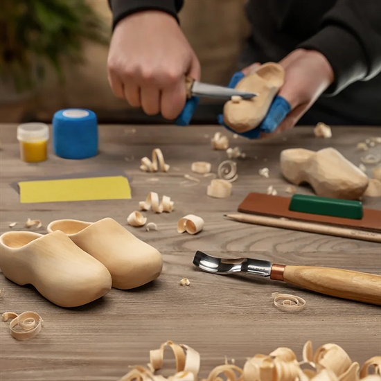 Kitet är utformat för alla snidare och ger den perfekta möjligheten att skapa ett par autentiska träskoar, kända från Nederländerna och världen över. Kitet innehåller en snidkniv och ett håljärn för formning och detaljer, två basswood-emnen som är idealiska för första projekt samt en mall för att guida din design.