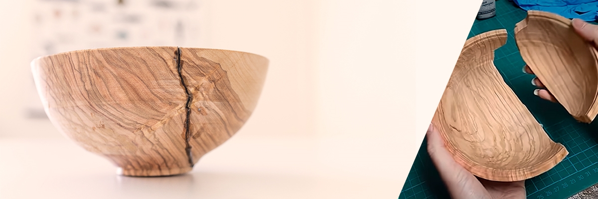 Så räddar du en sprucken träskål med svart lim | Trädsvarvningsguide