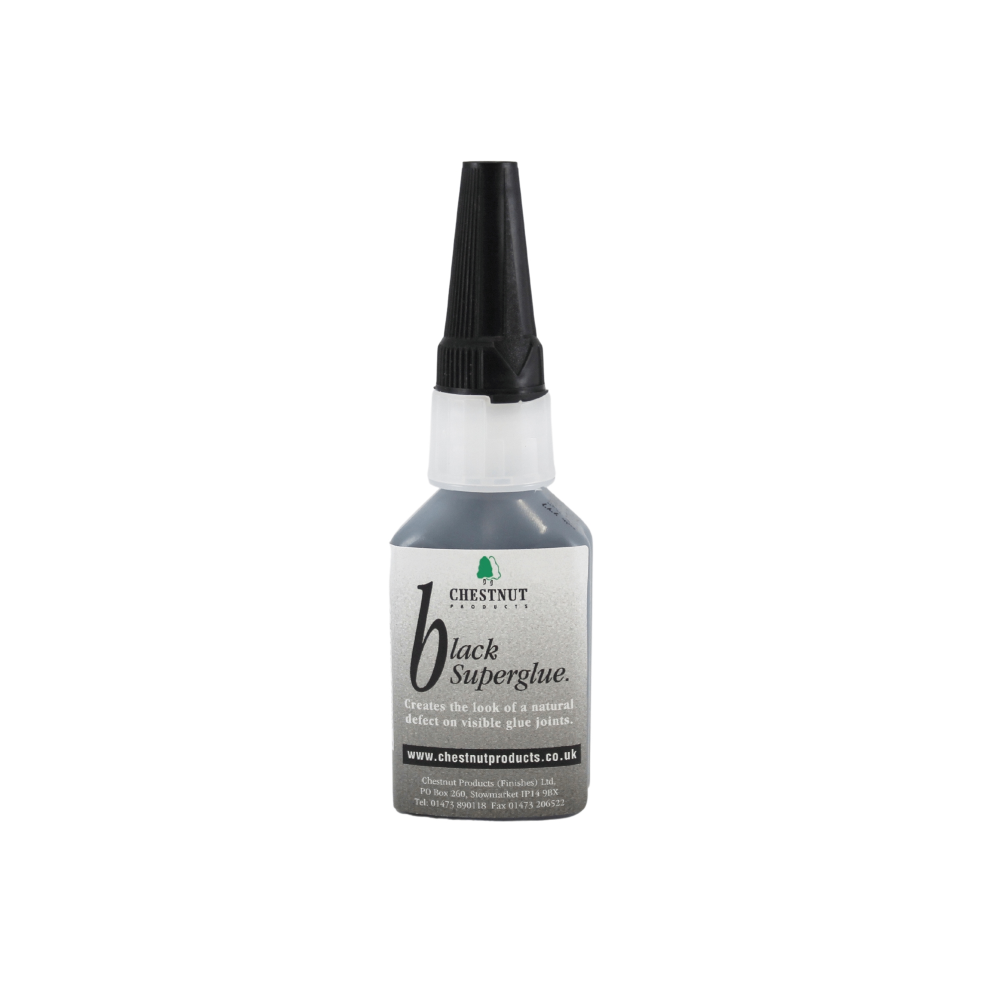 En ny version av vårt CA-superlim, detta är ett tjockt, svart lim med samma starka egenskaper som vårt vanliga superlim, men med fördelen att det är perfekt när limfogen syns. När limmet har härdat efterliknar det naturliga fel och strukturer i träet, vilket gör att skarven nästan blir en dekorativ del av träets uttryck. Den svarta färgen gör limmet särskilt lämpligt för att fylla sprickor i mörka träslag som valnöt och mahogny, samt i exotiska material som mammutelfenben, där det både stabiliserar och framhäver träets eller materialets naturliga skönhet.