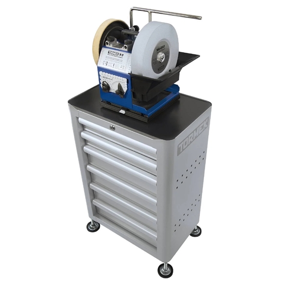 Slipstation Tormek TS-740 är utvecklad för att skapa ordning, överblick och goda arbetsförhållanden vid slipning av verktyg. Stationen är tillverkad i en robust stålkonstruktion och har en slitstark, reptålig metallisk lack som klarar daglig användning i såväl verkstad som hobbyrum. De rundade hörnen ger ett genomarbetat och tryggt intryck där funktion och finish samspelar naturligt.