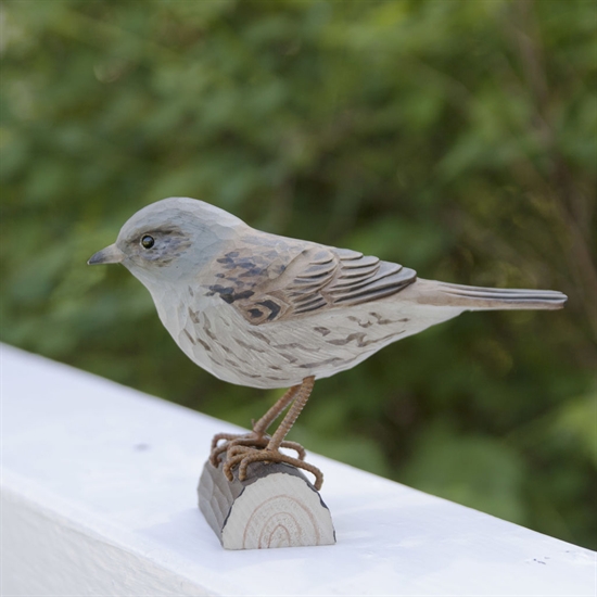 Järnsparvan är en lite okänd fågel. Den är skygg med bruna och stålgrå markeringar och gömmer sig ofta i tät buske, vilket gör den svår att upptäcka. Till skillnad från den levande fågeln visar vår handskurna DecoBird Dunnock gärna sin subtila skönhet var den än står.