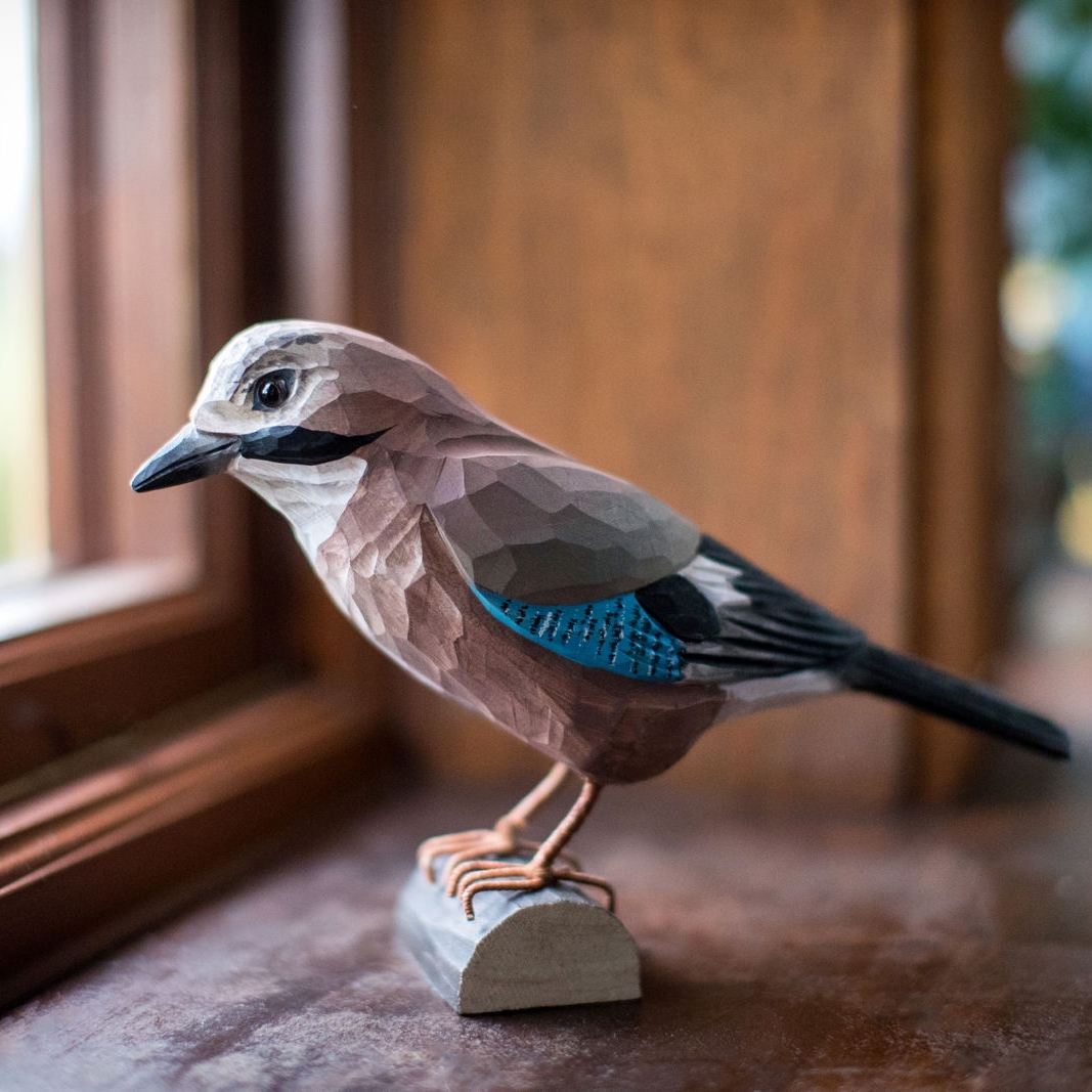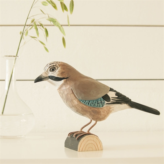 Skogsskrake är en vacker beige fågel med himmelsblå band på vingarna. Den kännetecknas också av sitt svarta "mustasch". Dessa vackra färger gör DecoBird Jay till en fin dekorativ detalj för fågelälskare. Den är också realistisk i teckning och färger, vilket varje fågelskådare omedelbart noterar.