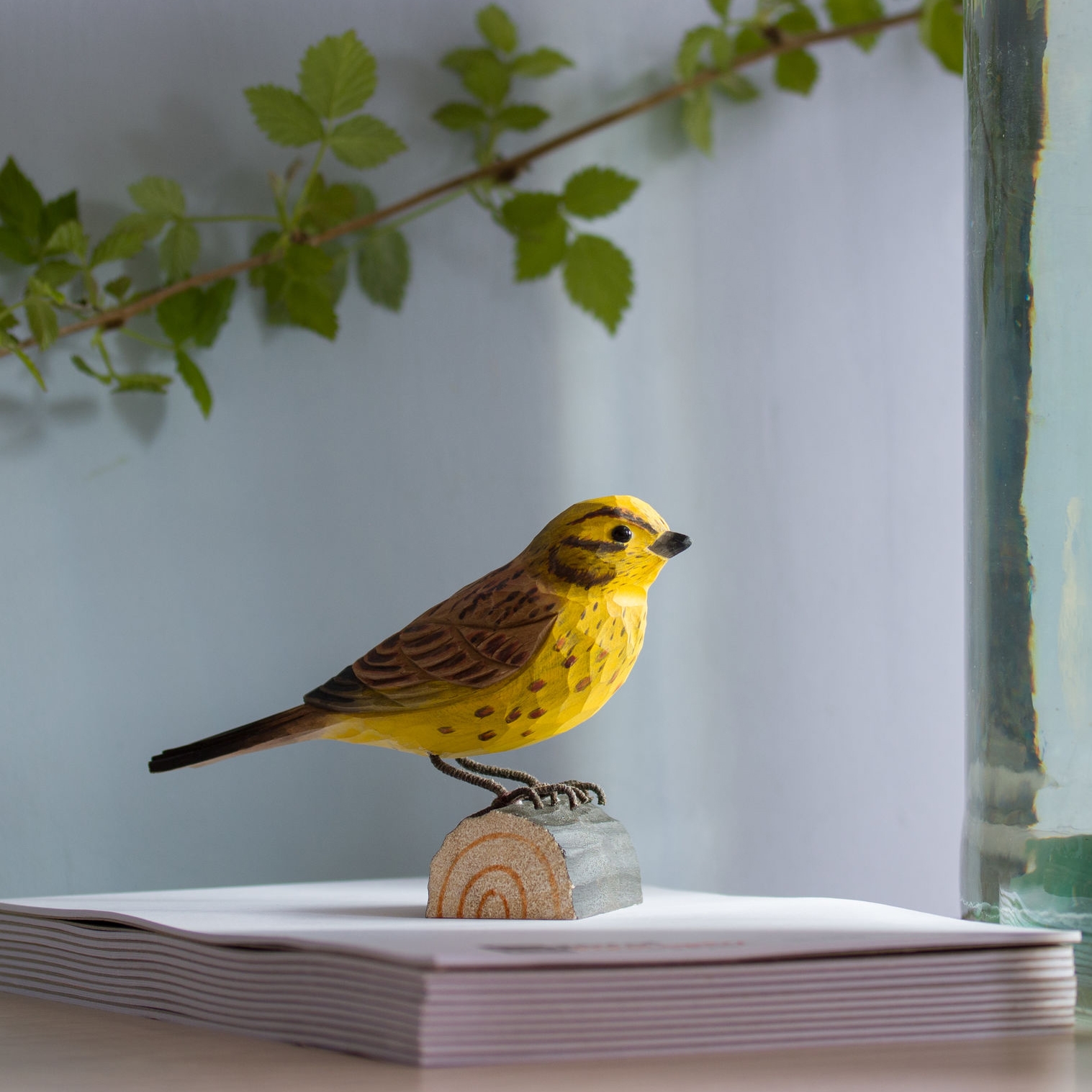 DecoBird Gulhämpling är en naturtrogen träfågel som är handskuren och målad med vattenbaserad färg. Den levereras i en presentkartong med fönster. Ett litet häfte med information om arten medföljer. Serien utökas kontinuerligt med nya favoriter. Saknas din favoritfågel? Kontakta oss gärna.