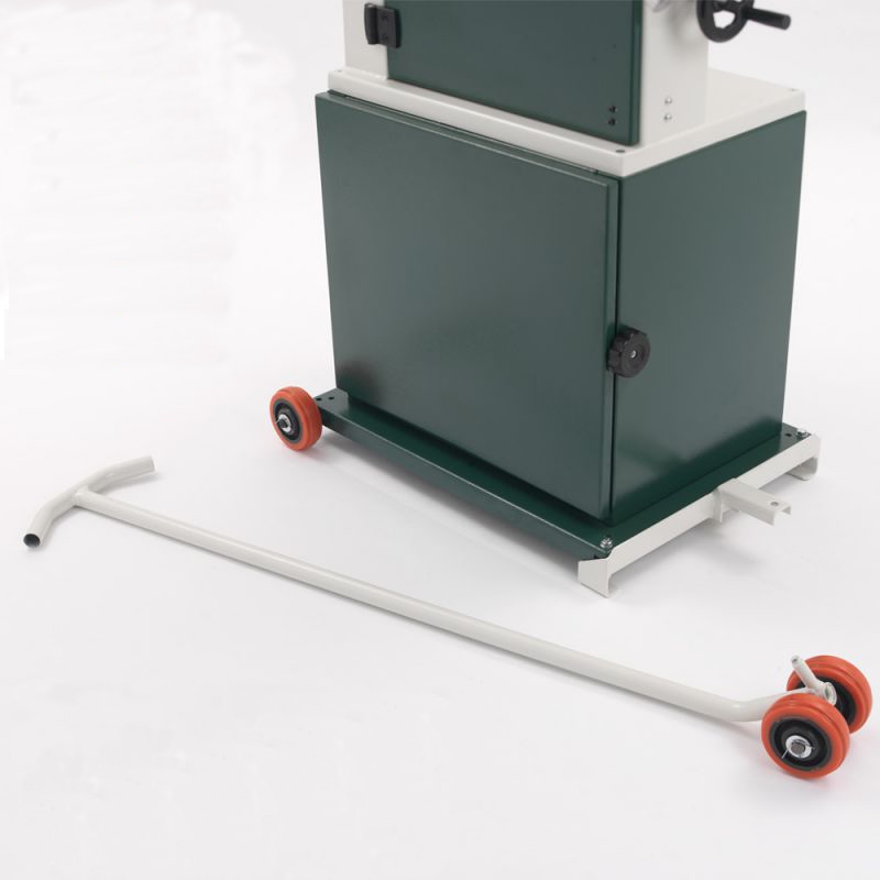 Hjulkitets robusta konstruktion och enkla manövrering gör det möjligt att transportera bandsågen snabbt och enkelt. Pedalstyrningen gör det möjligt att kontrollera hjulen med foten, vilket frigör dina händer för andra uppgifter samtidigt som du behåller säkerheten och kontrollen över maskinen. Hjulen ger en jämn rörelse och kan lätt låsas på plats när maskinen är korrekt positionerad.