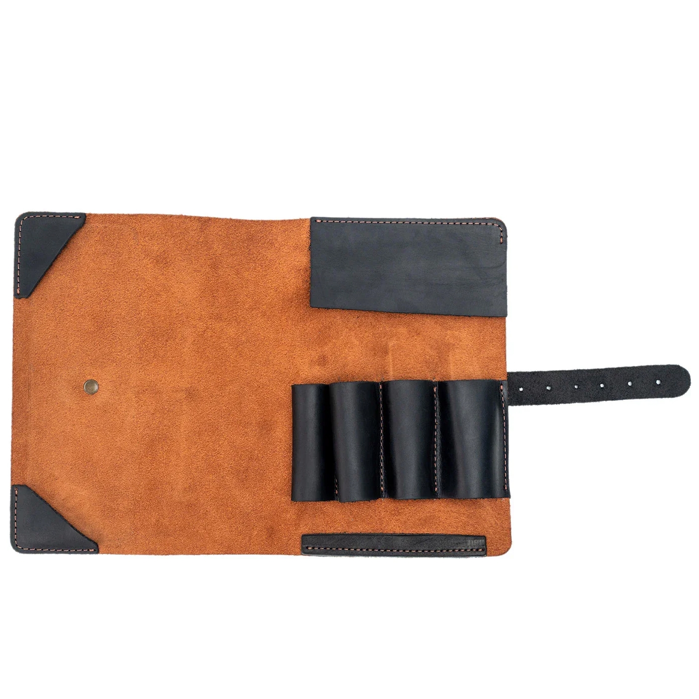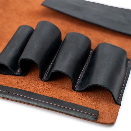 Väskan är tillverkad av äkta högkvalitativt läder och är den perfekta förvaringslösningen för alla sniderientusiaster som vill skydda sina värdefulla verktyg.