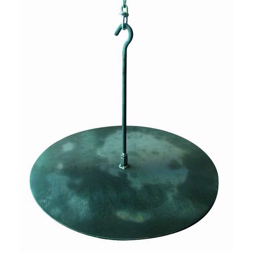 Platt panna med upphängningskrok i mitten.
